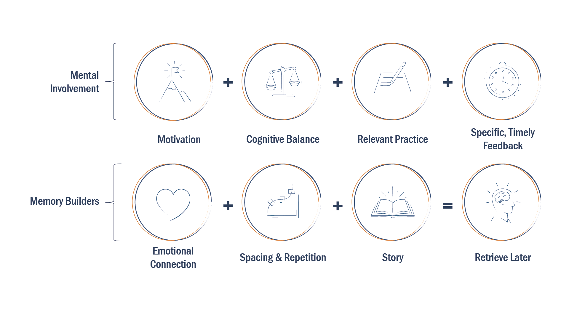 Before we can remember anything, we have to first learn it! Research (and experience) tells us that motivation, relevant practice, and specific, timely feedback are all required for learning … but that’s not the whole story. These are all essential parts of the learning process, but we have to take remembering into consideration to complete our recipe.