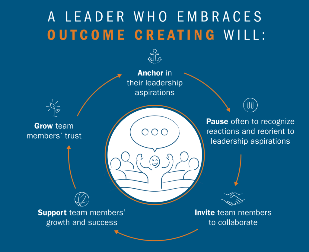 Moving from problem-reacting to outcome-creating is referred to as adaptive change, taking root in small moments and iterative behaviors over time. It’s the kind of shift that’s transformative, meaning the proverbial rubber band does not snap back. This change becomes a new way of being and brings a new mindset.