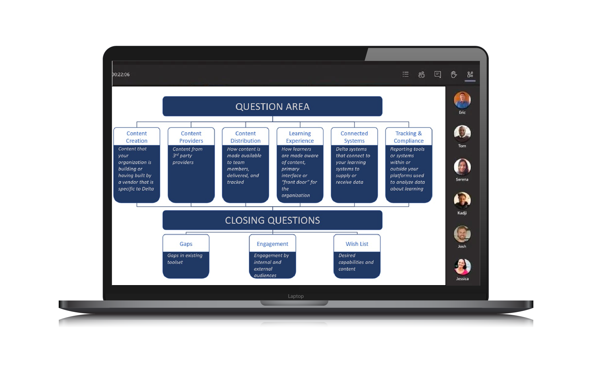 Map your technology landscape, determine key user personas, and identify gaps in your learning process through this half-day workshop.