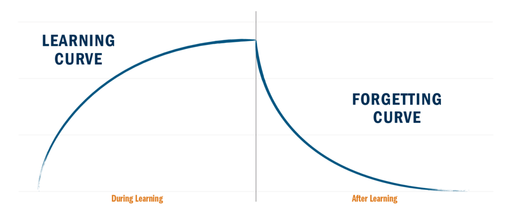 - Share with them the learning and forgetting curves (shown below). These curves can demonstrate that creating learning is not enough—that we also must work to minimize forgetting and support remembering.