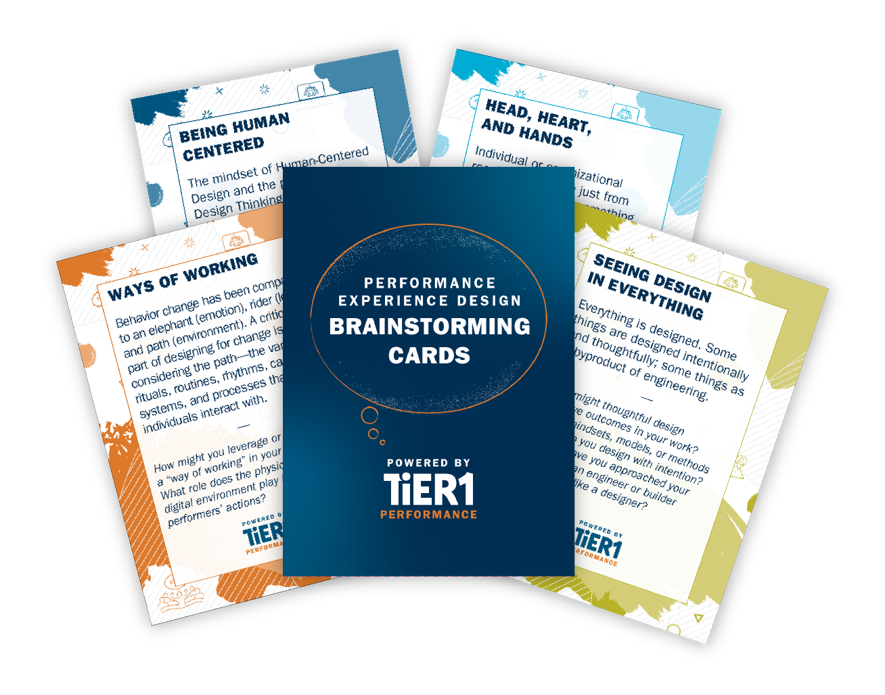 Performance Experience Design (PXD) is the process of designing experiences that change behaviors. This deck of PXD Brainstorming Cards will inspire you to embrace new mindsets and new ways of looking at yourself, your work, and the world around you.