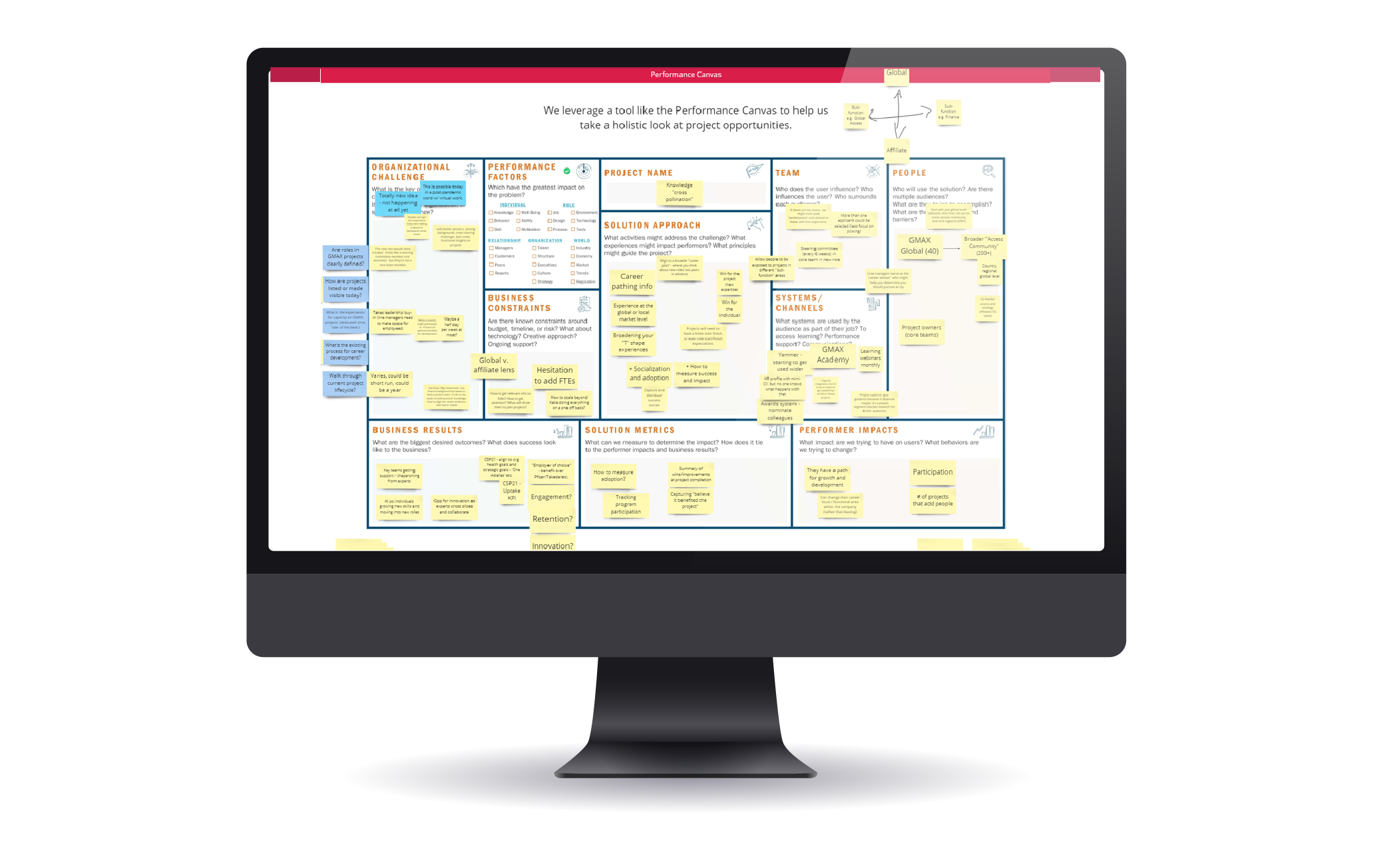 - Think holistically about the problems you’re solving with our Performance Canvas.