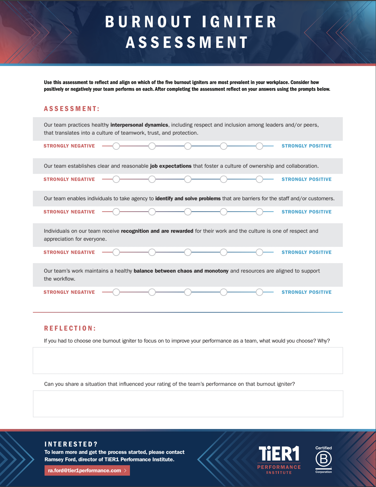 Reflect on how key influences of burnout show up in your team and develop a plan for mitigating these factors to reduce burnout.