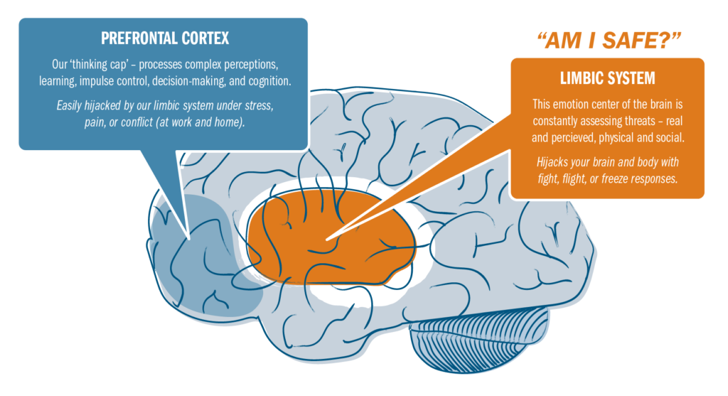 A lack of trust and security may be the biggest influencer of a team’s sense of accountability. For the human brain, the first order of business is survival. Our limbic system—the part of the brain that drives our behavioral and emotional responses—has the power to override just about every other brain function when we are in danger. We know this as the fight, flight, or freeze response.