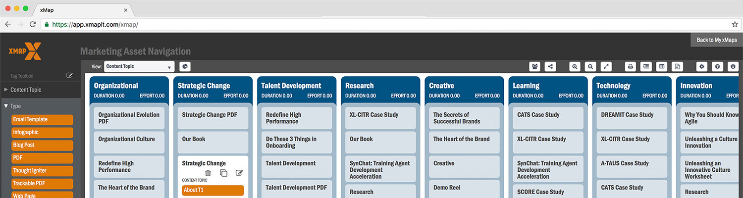 Sound too good to be true? Then you haven’t heard of xMap. xMap makes it easy to brainstorm, design, and analyze great learning experiences. Work in the cloud as you design, tag, sequence, and rearrange as many learning activities as you want (xMap can handle complexity). An easy-to-use visual interface ensures everyone on your team can collaborate together in real time to craft and organize robust learning experiences and content.