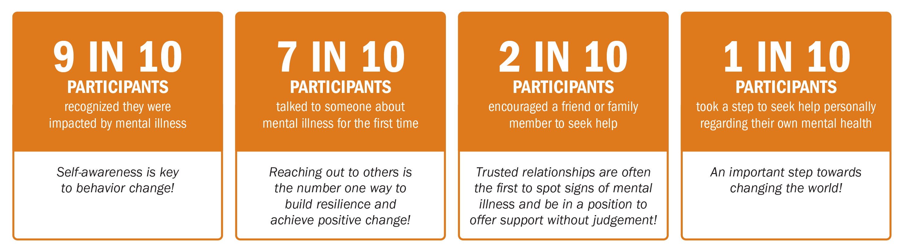 At the core of improving your people’s mental health is your organization’s ability to create a place where people feel safe and challenged in equal measures. When your people feel psychologically safe and trusted, they bring their hardest challenges forward to be supported and addressed as a team. When your people feel seen and appreciated, they bring their ‘A-game’ every time…even when no one is looking.