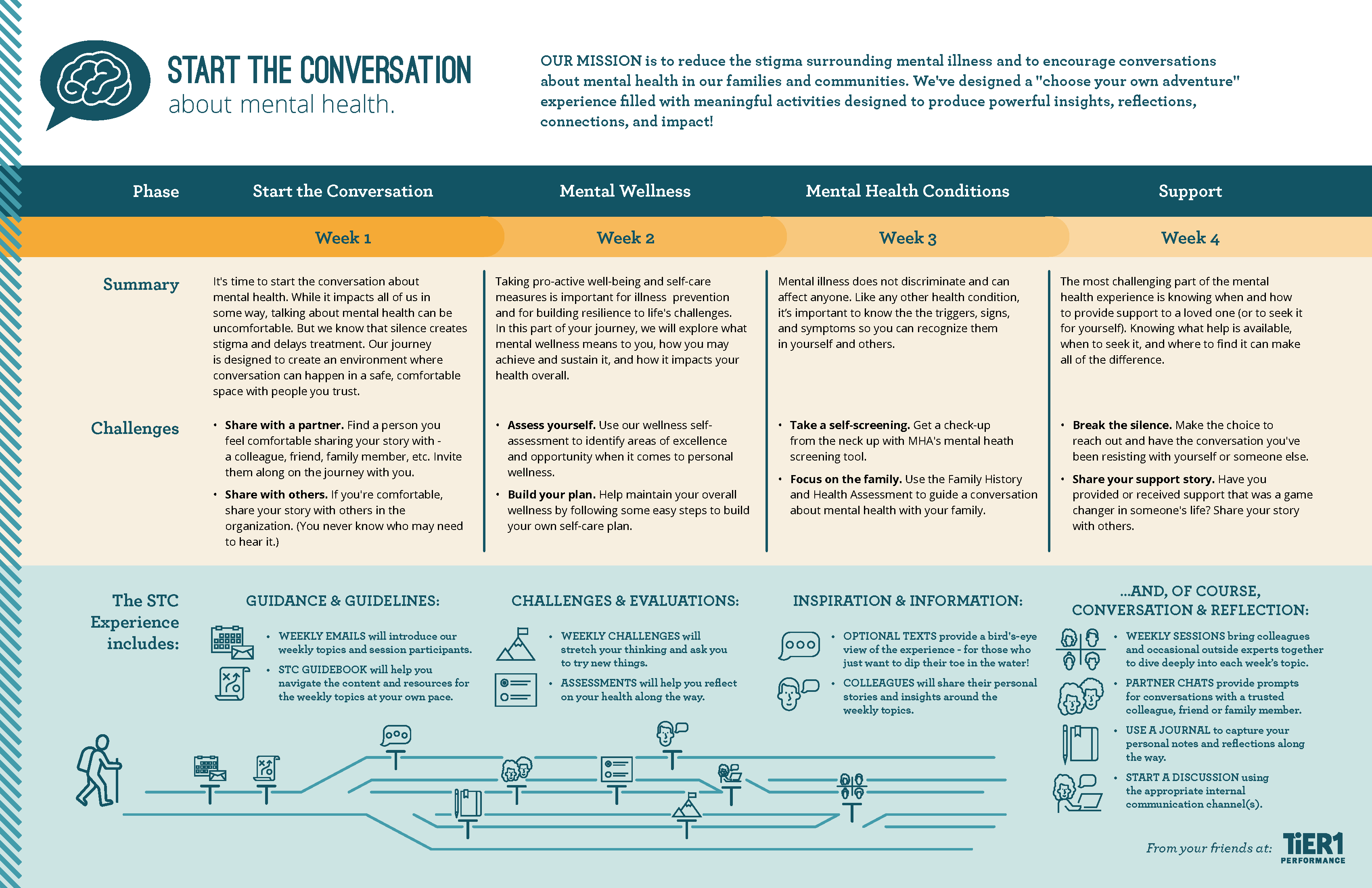 TiER1 has partnered with several local organizations to create and iterate on an organizational experience that’s designed to break the stigma around mental health through culture and support.